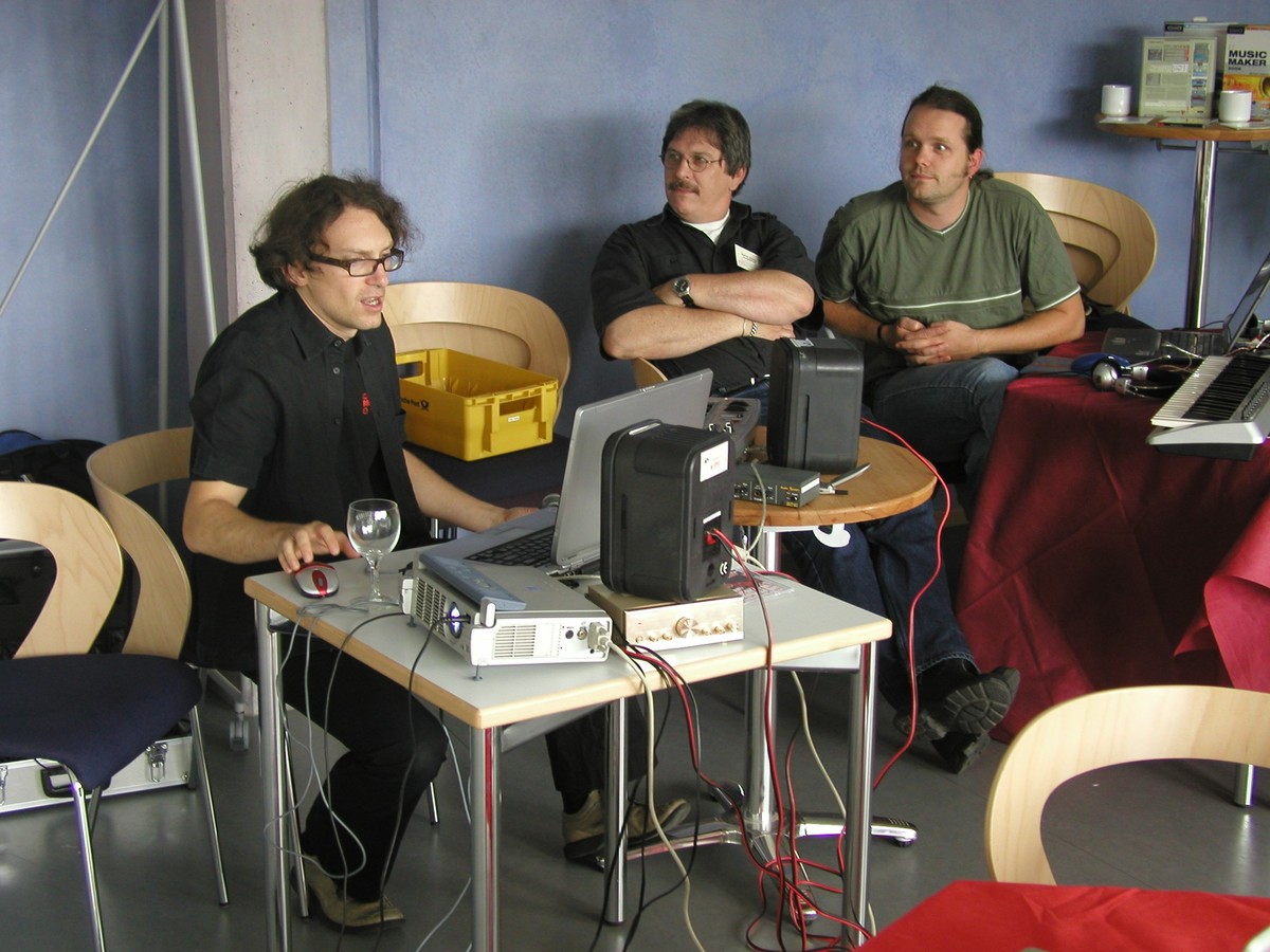 Nach soviel Input und rauchenden Köpfen durften die TeilnehmerInnen in entspannt kreativer Atmosphäre am zweiten Tag selbst an die Rechner: In Workshops wurden Musik und Handyklingeltöne gemacht, durchs Netz gereist, Präsentationen gebastelt und so weiter. Am frühen Abend traf man sich zur gemeinsamen Begutachtung aller Ergebnisse.